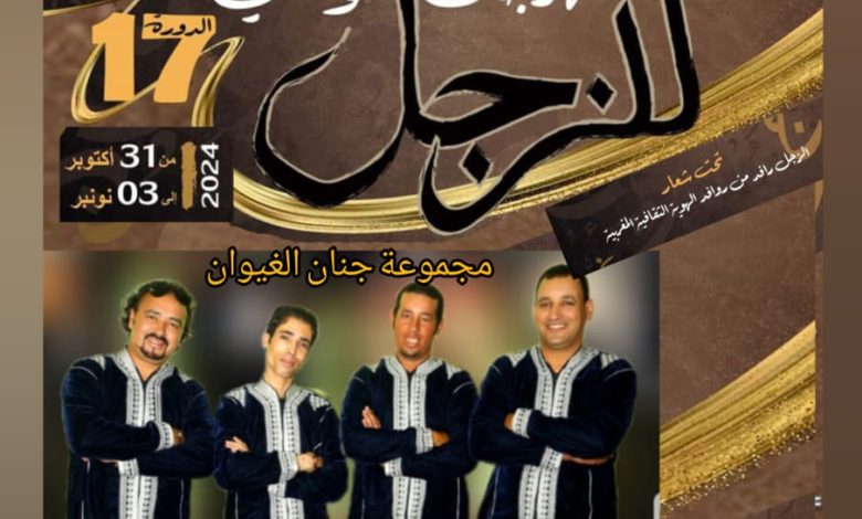 تنظم وزارة الشباب و الثقافة و التواصل -قطاع الثقافة- تحت الرعاية السامية لصاحب الجلالة الملك محمد السادس نصره الله المهرجان الوطني للزجل -الدورة17- إبتداء من 31 أكتوبر إلى غاية 3 نونبر 2024، بمجموعة من المدن داخل جهة الدار البيضاء/سطات، بمشاركة زجالي وزجالات المغرب، بينما تحيي مجموعة من الفرق الغنائية من داخل إقليم بنسليمان وخارجه سهرات فنية متنوعة، و ستشارك مجموعة جنان الغيوان في إحدى السهرات الفنية و ذلك يوم 2 نونبر 2024 بالمركز الثقافي ببنسليمان على الساعة السابعة مساء، و ستؤدي مجموعة من روائعها الغنائية التي أبدعتها منذ تأسيسها.