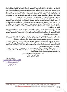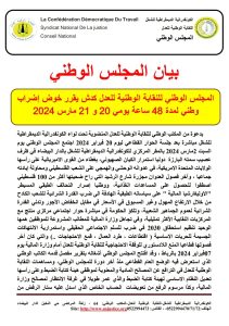 وفي ختام الاجتماع، قرر المجلس الوطني لنقابة العدل تسطير برنامج نضالي تصعيدي يبدأ بإضراب وطني لمدة 48 ساعة يومي 20 و 21 مارس 2024، مع التفويض للمكتب الوطني لتسطير باقي المحطات النضالية، داعين جميع النقابات القطاعية للالتحاق بهذه المعركة التاريخية.