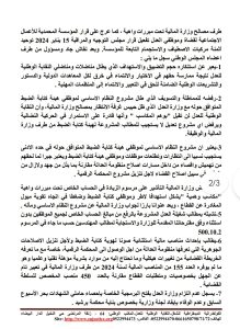 وفيما يتعلق بالمطالب النقابية، أكد المجلس على ضرورة تلبية المطالب المشروعة لموظفي هيئة كتابة الضبط، بما في ذلك تعديل النظام الأساسي وزيادة الحساب الخاص، مع احترام حقوقهم المهنية والمادية. كما طالب المجلس بضرورة إحداث مناصب مالية استثنائية تتناسب مع طبيعة مهام موظفي كتابة الضبط وتطلعاتهم المهنية.