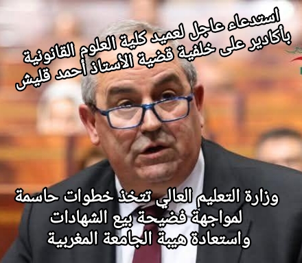 استدعاء عاجل لعميد كلية العلوم القانونية بأكادير على خلفية قضية الأستاذ أحمد قليش
