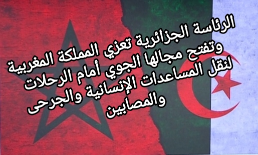 الرئاسة الجزائرية تعزي المملكة المغربية وتفتح مجالها الجوي أمام الرحلات لنقل المساعدات الإنسانية والجرحى والمصابين