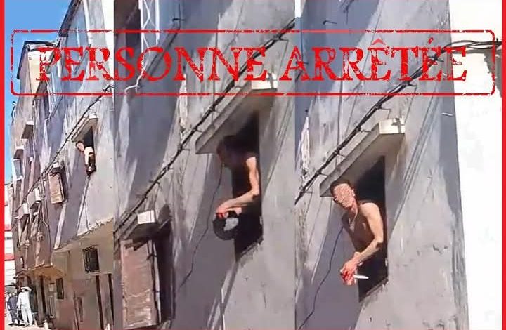 وقد أسفر التدخل الفوري لعناصر الشرطة عن ضبط المشتبه فيه، غير أنه واجههم بعدم الامتثال والتهديد باستعمال السلاح الأبيض وبإضرام النار عمدا باستعمال قنينة غاز، وهي الأفعال الإجرامية التي شكلت موضوع شريط فيديو منشور على صفحات مواقع التواصل الاجتماعي.