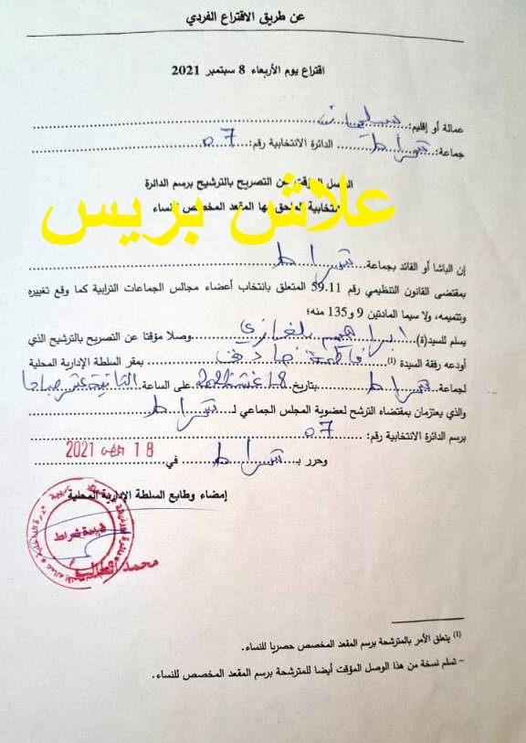 مناسبة الكلام، يحيلنا على ما شهده مقر قيادة الشراط، التي عرفت في حدود 11.30 من صباح اليوم الاربعاء، تقدم وكيلة الائحة الاضافية لحزب الاستقلال بالدائرة 07 بجماعة الشراط، من أجل سحب ترشيحها بايعاز من مرشحين تحسسا خطر السقوط في الانتخابات حتى قبل بدايتها.