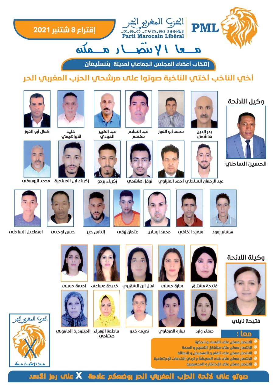 أعلن الاستاذ الحسن الساحلي، محامي بهيئة الدار البيضاء، عن لائحته الرسمية التي دخل بها غمار الانتخابات الجماعية القاتدمة ببن سليمان.