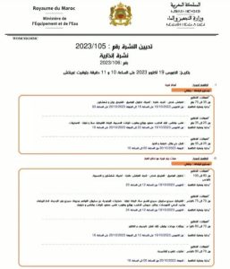 الرئيسية/المديرية العامة للأرصاد الجوية:نشرة إنذارية رقم 2023/106 من مستوى يقظة برتقالي:أمطار قوية و هبات رياح قوية مع تطاير الغبار/FB_IMG_1697718692647 FB_IMG_1697718692647