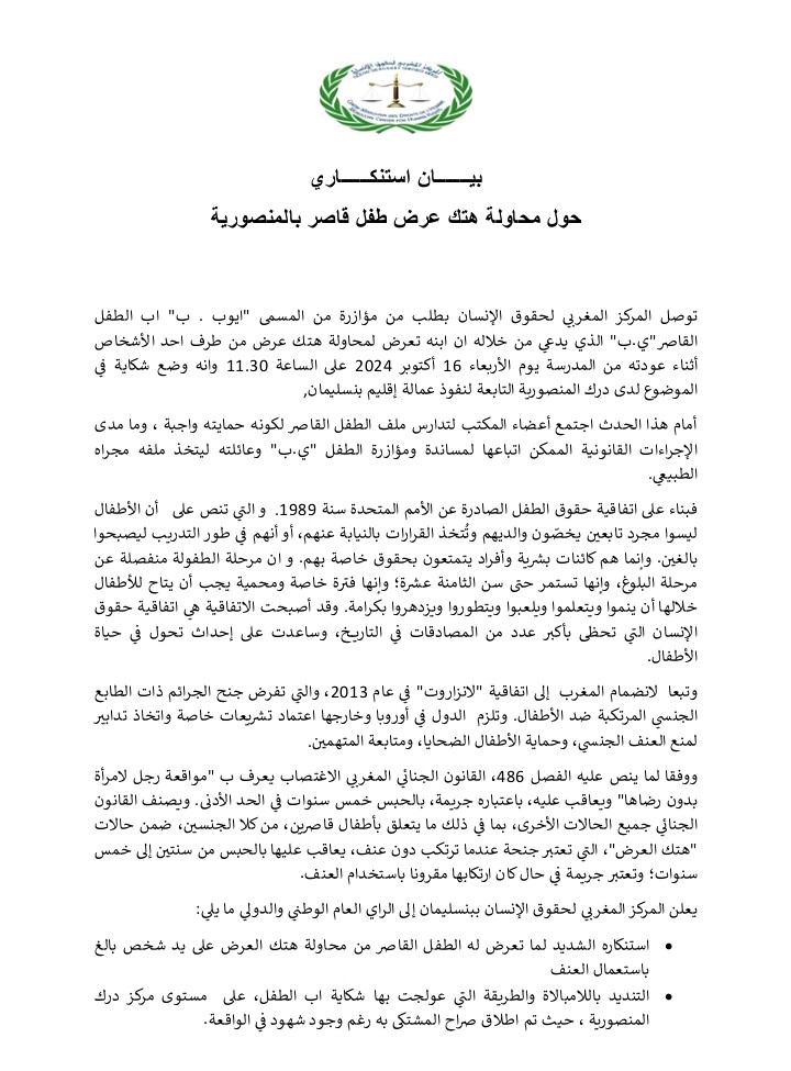 الرئيسية/أخبار/المركز المغربي لحقوق الإنسان يصدر بيان بخصوص محاولة إغتصاب طفل قاصر بجماعة المنصورية. أخبار المركز المغربي لحقوق الإنسان يصدر بيان بخصوص محاولة إغتصاب طفل قاصر بجماعة المنصورية. أبو جناالأحد 20 أكتوبر 2024 أقل من دقيقة علاش بريس أبو جناالأحد 20 أكتوبر 2024 أقل من دقيقة اظهر المزيد فيسبوك تويتر واتساب تيلقرام مشاركة عبر البريد طباعة