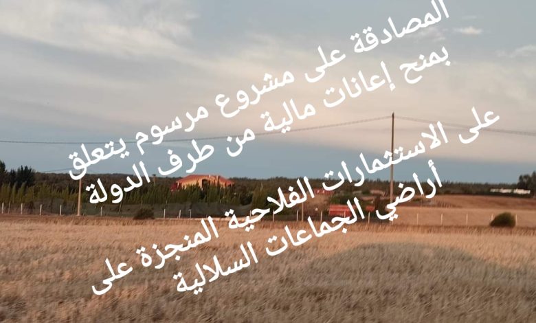 المصادقة على مشروع مرسوم يتعلق بمنح إعانات مالية من طرف الدولة على الاستثمارات الفلاحية المنجزة على أراضي الجماعات السلالية
