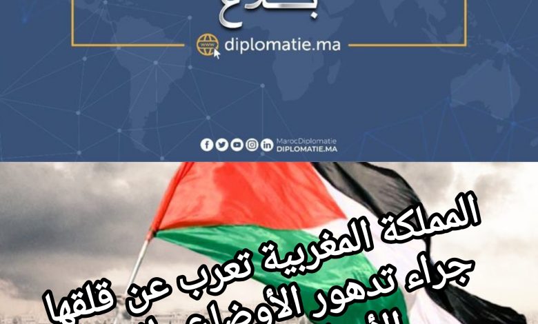 تعرب المملكة المغربية عن قلقها العميق جراء تدهور الأوضاع واندلاع الأعمال العسكرية في قطاع غزة وتدين استهداف المدنيين من أي جهة كانت.