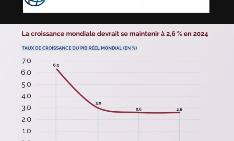 ويتوقع تقرير البنك الدولي أن يظل النمو العالمي عند 2.6% في 2024 قبل أن يرتفع قليلا إلى 2.7% في المتوسط في 2025-2026. وهذا مستوى أقل بكثير من متوسط 3.1% المسجل خلال العقد الذي سبق جائحة كوفيد-19.ووفقا لهذه التوقعات، في 60% من الاقتصادات، التي تمثل مجتمعة أكثر من 80% من سكان العالم والناتج المحلي الإجمالي العالمي، سيكون النمو خلال الفترة 2024-2026 أبطأ مما كان عليه في عقد ما قبل كوفيد-19.