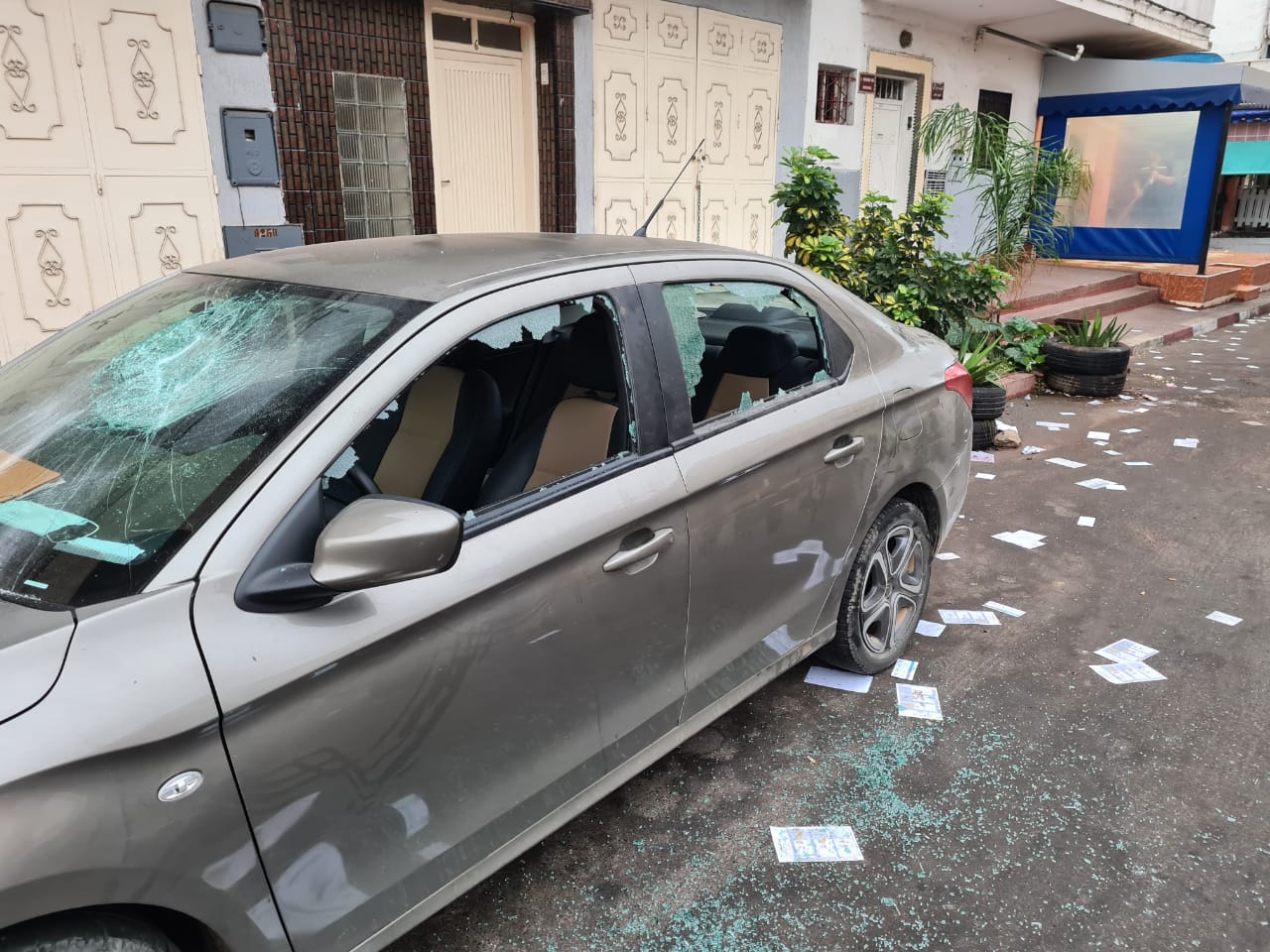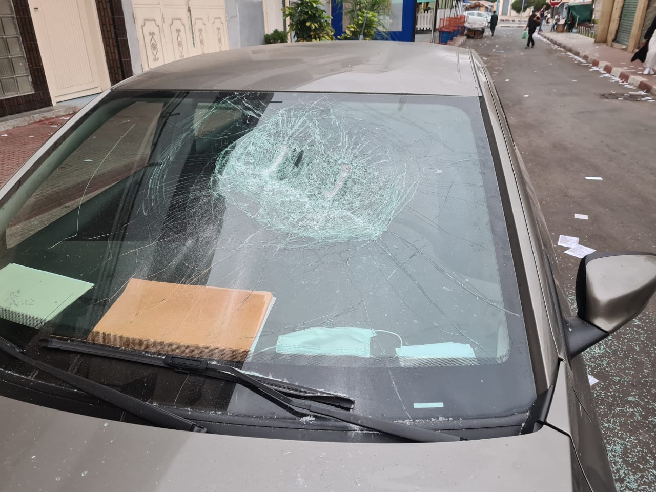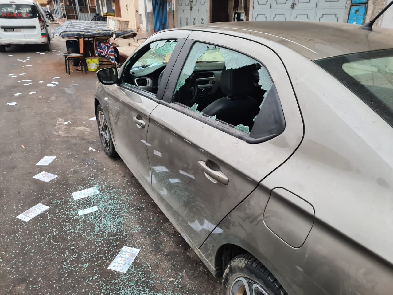 بالصور .. الشراط تستفيق على أعمال البلطجة .. وتهشيم سيارة خصم سعيد الزايدي على رئاسة الجماعة