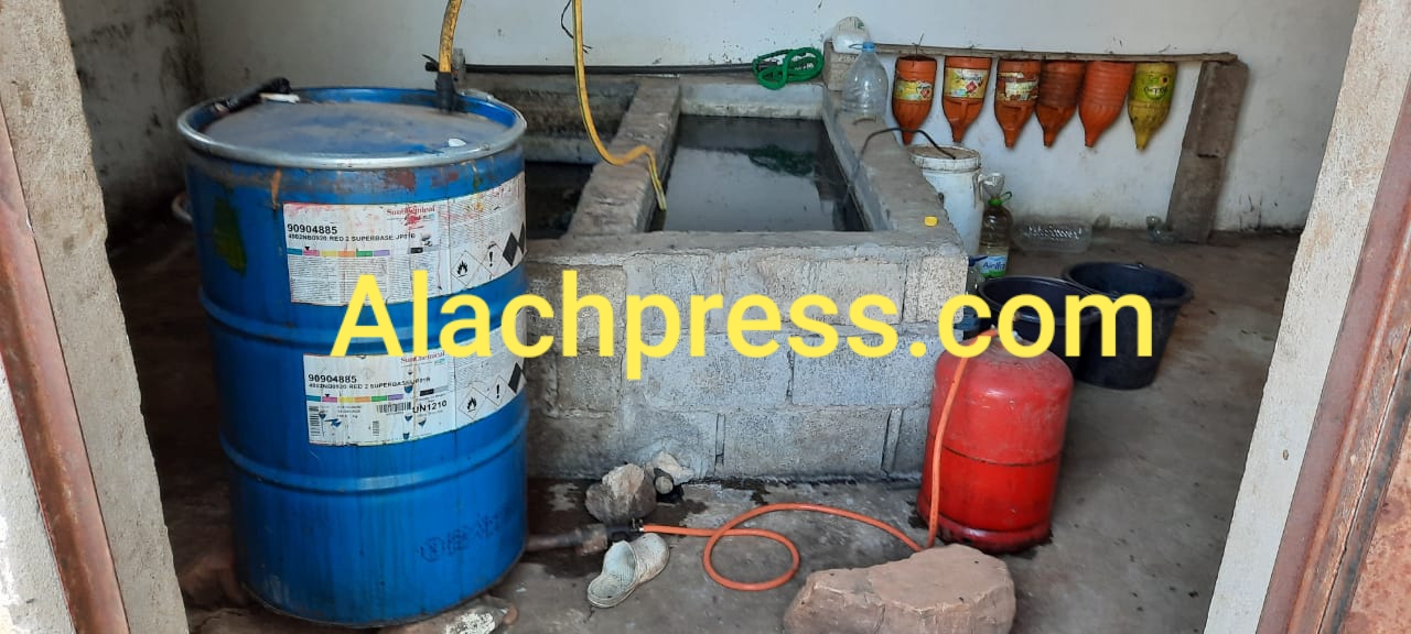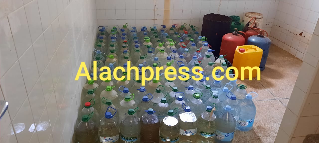 وذكرت مصادر علاش بريس أن تدخل عناصر الدرك أسفر عن حجز كمية كبيرة من التين المخمر 700 لتر من مسكر ماء الحياة “الماحيا” المعدة للبيع، فضلا عن عدد المعدات؛ من ضمنها براميل، وأسلاك نحاسية، وقنينات الغاز التي تستعمل في عملية الطهي والتقطير.