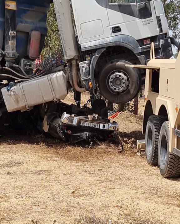 بالصور مأساة ببوزنيقة.. شاحنة تدهس سيارة بداخلها شخصين يعملان بغابة القصر الملكي
