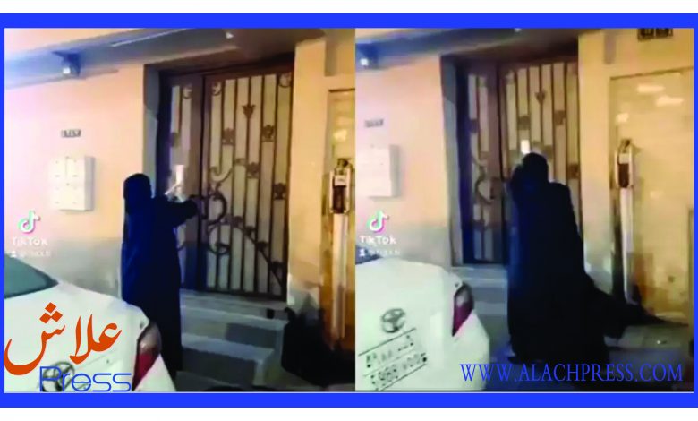 وعلقت السيدة على مقطع الفيديو بعبارة “وهاي على باب بيتهم وتطلقت يارب الفرحة يارب”، مع إطلاق أغنية خليجية شهيرة في الخلفية تقول كلماتها “رسالة وصلوها له يشيل الصلح من باله”.