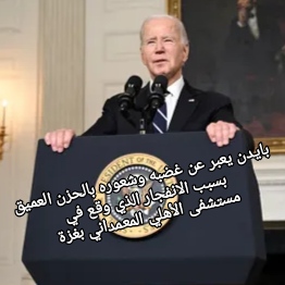 قال الرئيس الأمريكي جو بايدن، الثلاثاء، في بيان له وهو على متن طائرته متوجها إلى الشرق الأوسط، إنه “غاضب ويشعر بالحزن العميق بسبب الانفجار الذي وقع في مستشفى الأهلي المعمداني بغزة”، وأضاف أن الولايات المتحدة “ستواصل جمع المعلومات حول ما حدث بالضبط”.
