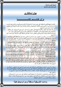 – تستنكر وبشدة سياسة التماطل و التسويف التي نهجتها و تنهجها الوزارة الوصية و كافة المسؤولين المنتخبين و المعيين على كافة درجات مسؤولياتهم.