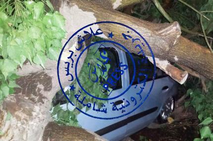 وكان وراء الحادثة سائق سيارة (خفيفة )، صدم شجرة بجانب الطريق ، أدت إلى وفاته هو وصديقه على الفور متأترين بجروحهم الخطيرة.