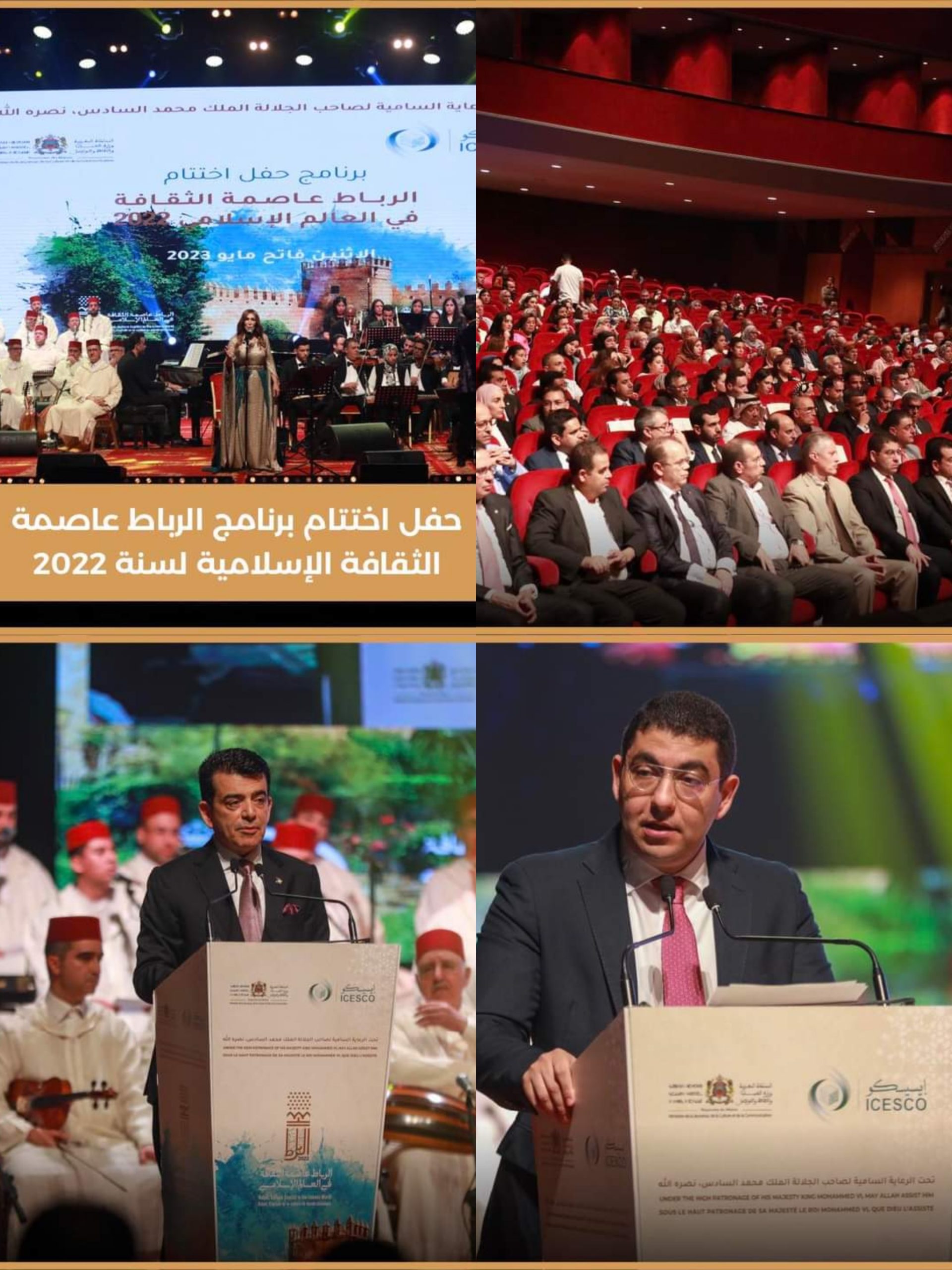 شهد مسرح محمد الخامس يوم الاثنين فاتح ماي تنظيم حفل اختتام برنامج الرباط عاصمة الثقافة الإسلامية لسنة 2022 والذي تم خلاله تنظيم عدد من الأنشطة طيلة السنة بشراكة بين وزارة الشباب والثقافة والتواصل ومنظمة الإيسيسكو.