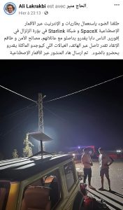 الرئيسية/خبراء مغاربة يتمكنون من إطلاق خدمات الإنترنيت بالمجان بالمناطق المنكوبة بفضل ستارلينك"، التابعة للملياردير الأميركي إيلون ماسك/Screenshot_2023-09-11-13-52-35-001_com.facebook.katana-edit Screenshot_2023-09-11-13-52-35-001_com.facebook.katana-edit