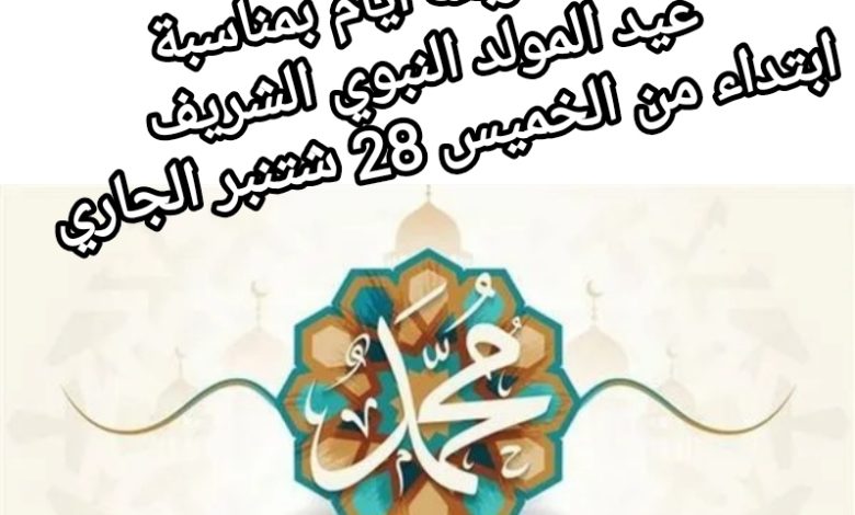 حسب بلاغ لوزارة الأوقاف والشؤون الإسلامية، فإن ذكرى عيد المولد النبوي الشريف، تصادف يوم الخميس 28 شتنبر 2023.