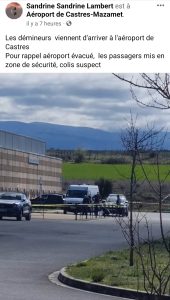 هبت رياح ذعر خفيفة فوق مطار كاستر مازامت ( تارن ) يوم الاثنين 20 مارس 2023 . بعد الساعة العاشرة صباحًا بقليل ، أبلغ موظفو المطار عن عدة قطع من الأمتعة المتروكة في غرفة الانتظار حيث كان حوالي 30 راكبًا يستعدون للطيران في اتجاه باريس … أخيرًا ، تم تطويق المحيط من قبل الدرك الذين قاموا على الفور بإجلاء مطار.