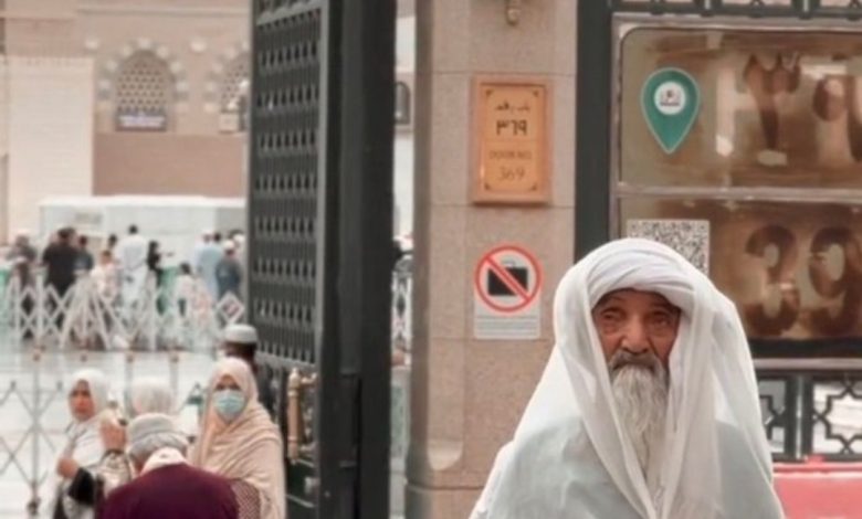 تداول نشطاء على مواقع التواصل الاجتماعي مقاطع فيديو وصور لرجل مٌسن يسير في أروقة الحرم المكي، ملقين الضوء على ملامحه وطريقة سيره الأمر الذي أثار تفاعلا.