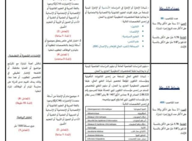 وتشمل هذه المباريات جميع أسلاك الأمن الوطني بما في ذلك عمداء الشرطة الممتازون (46 منصب)، وعمداء الشرطة (90 منصب)، وضباط الأمن (50 منصب)، وضباط الشرطة (400 منصب)، ومفتشي الشرطة (2500 منصب)، وحراس الأمن (3437 منصب).