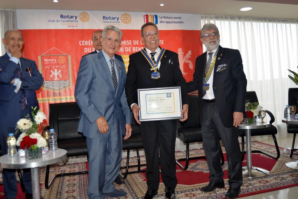 ومن جهته ، عبر رئيس نادي روتاري بنسليمان السيد رشيد الطايع، عن سعادته بالانضمام إلى عائلة روتاري الدولي، مشيرا إلى أن “نادي روتاري الدار البيضاء وفر لنا الدعم والمساندة لإحداث هذا النادي ببنسليمان “.