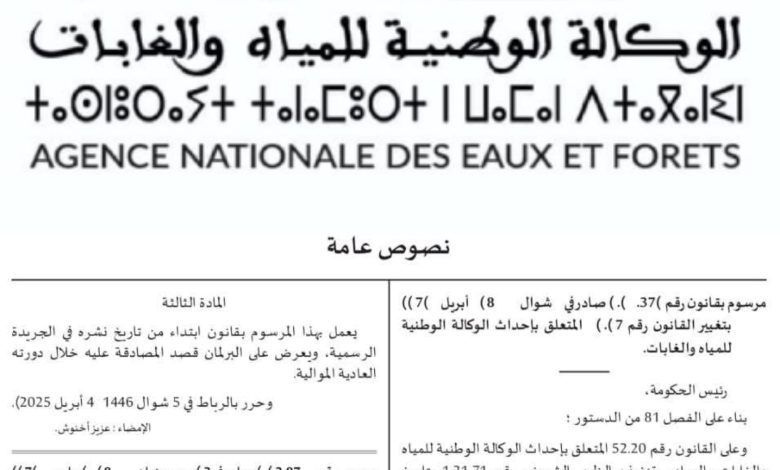في الآونة الأخيرة، واجه مشروع مرسوم قانون رقم 2.25.302 الذي يهدف إلى تعديل القانون رقم 52.20 المتعلق بإحداث الوكالة الوطنية للمياه والغابات رفضًا واسعًا من قبل موظفي القطاع.