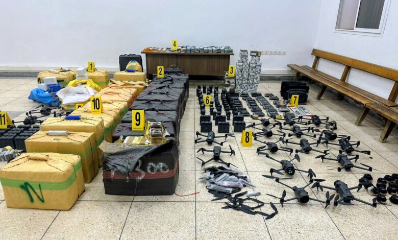 كما قادت عملية التفتيش أيضا إلى حجز 25 طائرة مسيرة و 155 بطارية و35 جهازا للتحكم عن بعد، فضلا عن ثماني سيارات يشتبه في استعمالها في تسهيل ارتكاب هذه الأفعال الإجرامية.