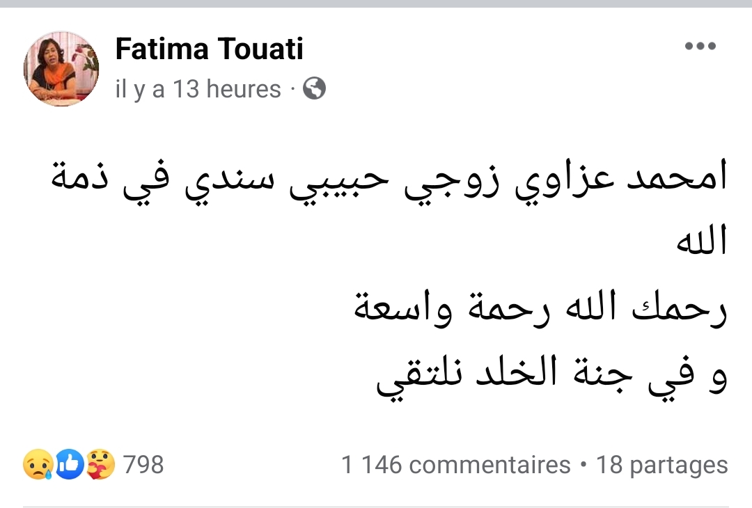 وكانت زوجة الراحل الإعلامية فاطمة التواتي ونجلته ابتسام العزاوي أعلنتا خبر الوفاة ، ليلة الأربعاء الخميس، عبر صفحتيهما الشخصية في فيسبوك.