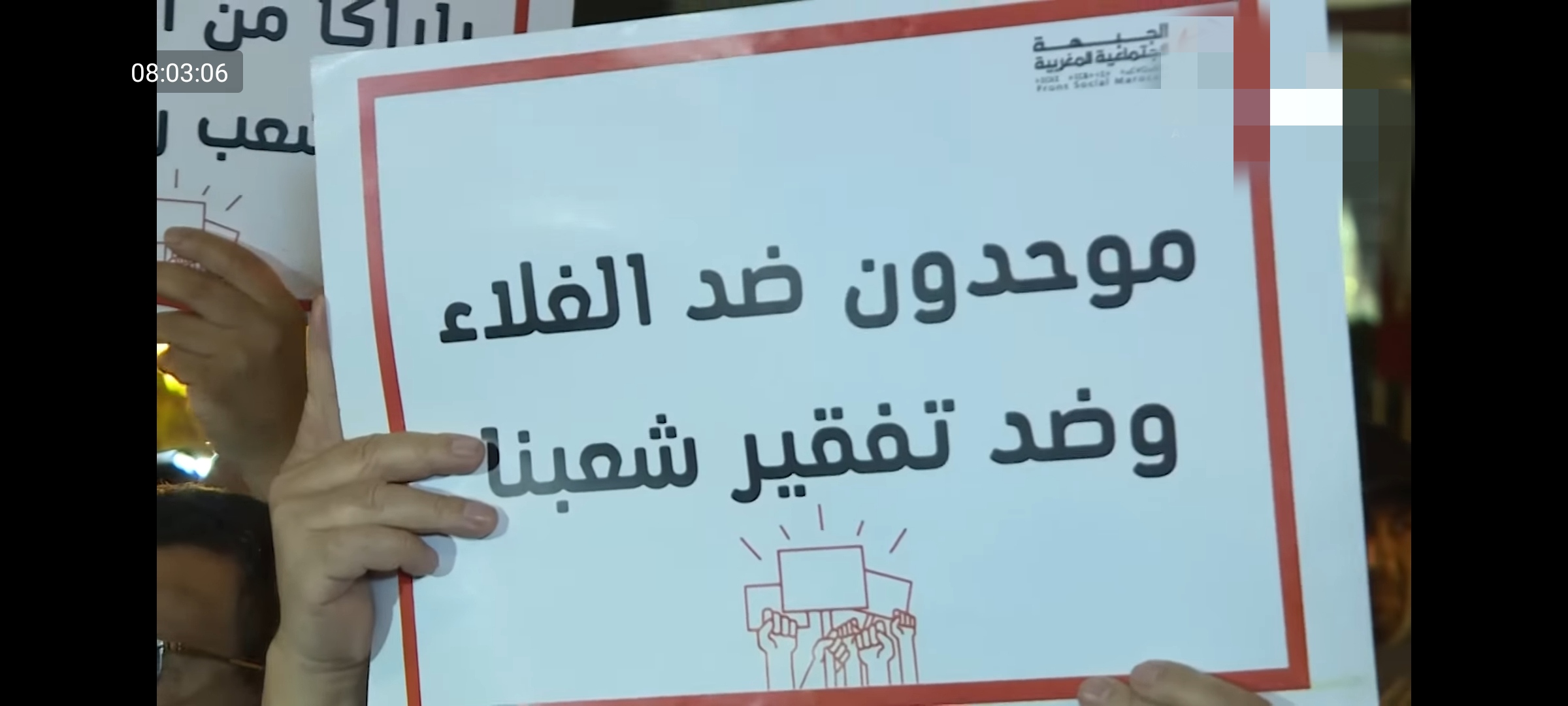 وخوفا على مستوى معيشتهم ، نزل المغاربة مرة أخرى إلى الشوارع للتعبير عن قلقهم. ونظمت مظاهرات غاضبة السبت الماضي ، لا سيما في الدار البيضاء والرباط ومراكش وطنجة احتجاجا على تصاعد أسعار المواد الغذائية ، بدعوة من الجبهة الاجتماعية ، ائتلاف أحزاب يسارية ونقابات ومنظمات حقوقية غير حكومية.