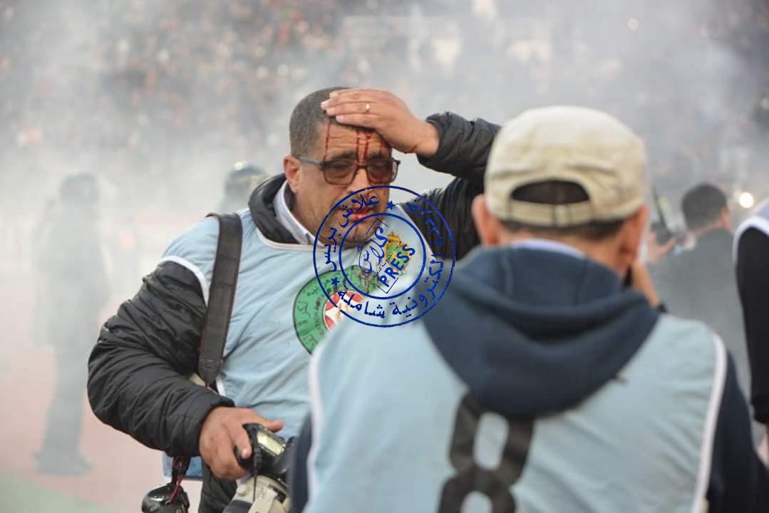 ولم يسلم حتى المصورون الصحافيون الذين غطوا المباراة، إذ تعرض الزميل عبد المجيد بزيوات لإصابة في الرأس، جراء رشقه بقطعة حديدية يرجّح أنها انتُزعت من المراحيض أصابته بجرح غائر في الرأس.