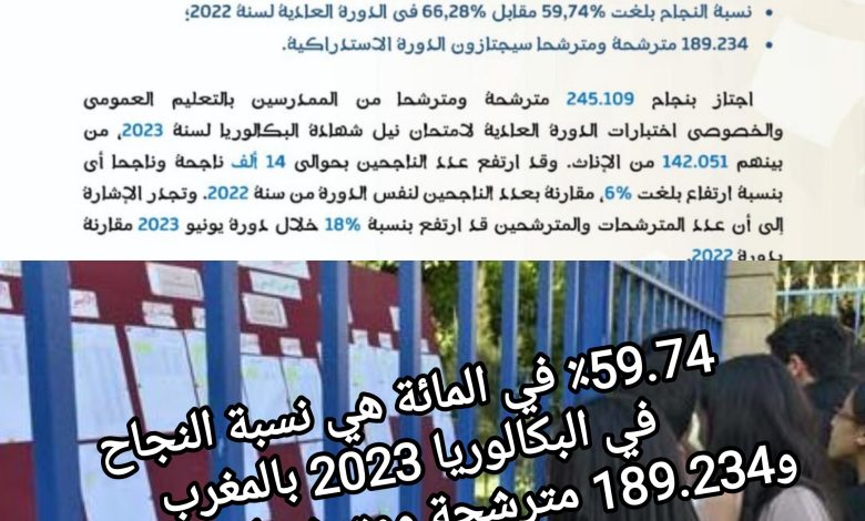 وبلغت نسبة النجاح 59,74% مقابل 66,28% في الدورة العادية لسنة 2022..مسجلة انخفاضا ملحوظا..