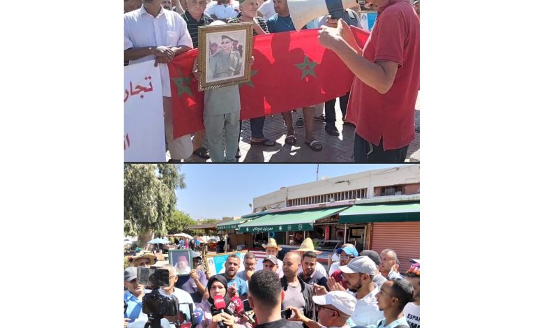 وقفة احتجاجية حاشدة لتجار السوق البلدي القديم ببنسليمان احتجاجاً على الترحيل وإقصاء تجار الدجاج بالتقسيط