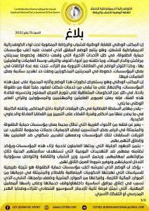 هذه الفئة، فإنه يعلن لعموم العاملين والمهتمين والمسؤولين وللرأي العام الوطني ما يلي: